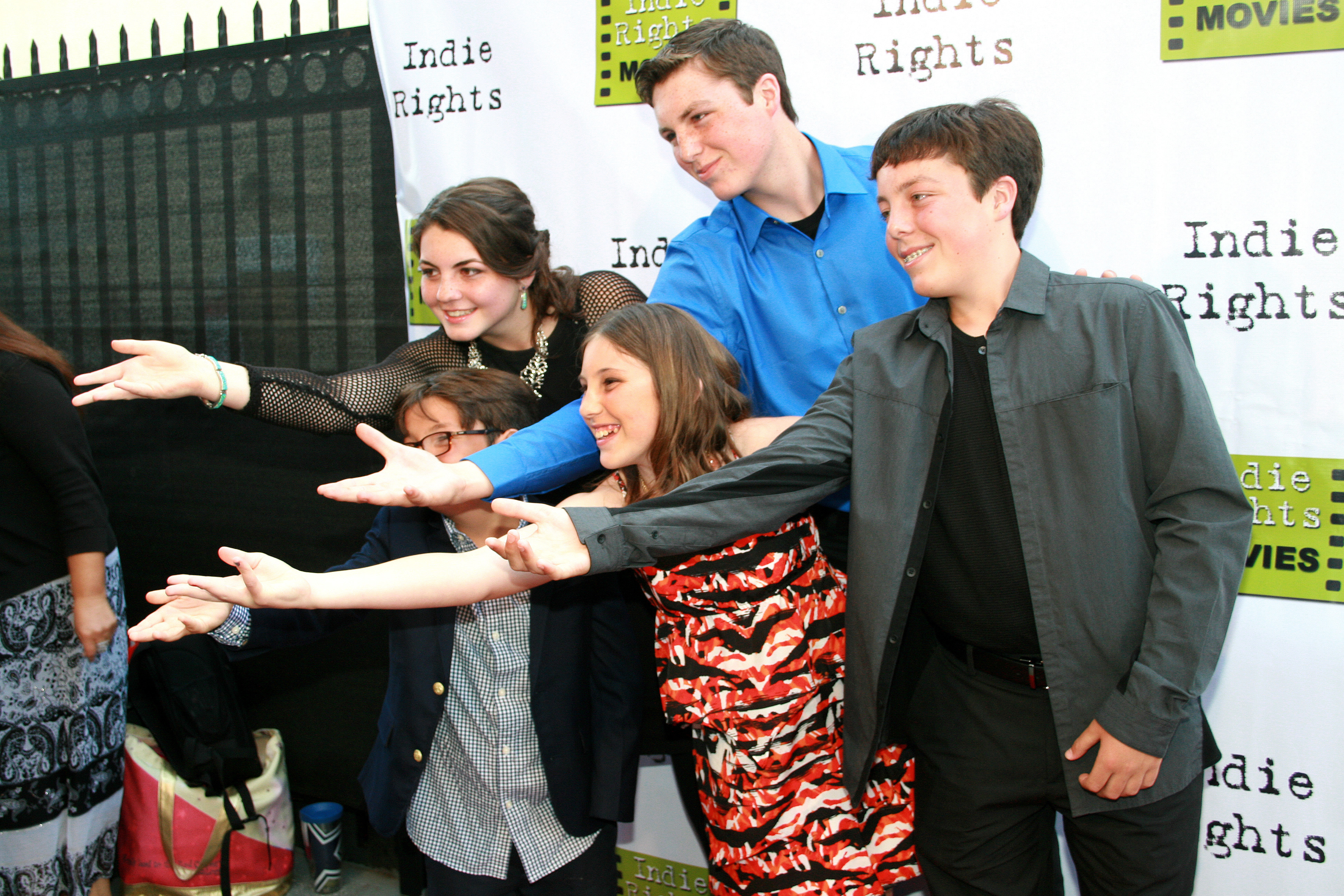 HOLLYWOOD, CA – JUNE 14: Cast (L-R) Lillian Almohajer, Matthew King, Nick King, Sid Almohajer and Karalena Morehead arrive for the Premiere Of ‘The World Famous Kid Detective’ held at The Arena Theater on June 14, 2014 in Hollywood, California.